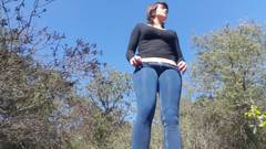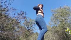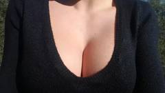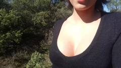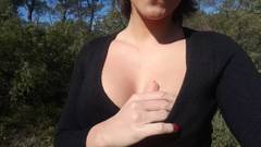 Morena francesa mostra a buceta e os peitos ao ar livre