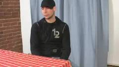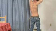 O cara bonito quer realizar sua fantasia de se masturbar na frente da câmera para agradar seus amigos gays.