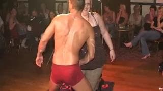 ![Muitas mulheres brincam com os pênis dos strippers Muitas mulheres brincam com os pênis dos strippers]()