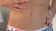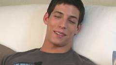 Miguel é um jovem excitado que se masturba na frente da câmera e goza em cima de si mesmo.
