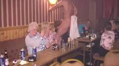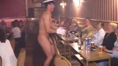 Essas vovós estão se divertindo muito em uma festa com homens nus dançando em cima da mesa. Alguns deles colocam seus paus em suas bocas.