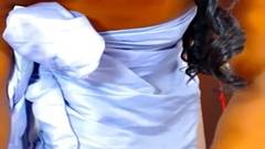 A morena sexy é envolta num lençol e a deixa solta para revelar seu belo corpo e pênis para seus seguidores.
