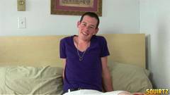 Calvin Croze está se cobrindo de esperma depois de ter se masturbado e esfregado seu pinto na frente da câmera