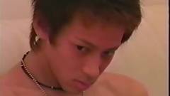 Esse asiático excitado se diverte brincando sozinho com seu pau e mesmo que tenha companhia, ele quer gozar sozinho