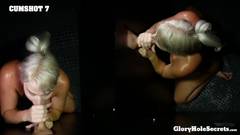 Uma milf loira devoradora de porra bombeia nove caudas no GloryHole