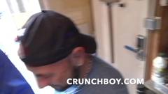 Esse cara oferece sua boca para agradar seus colegas de trabalho e faz um boquete tão delicioso que eles pedem que ele faça mais.