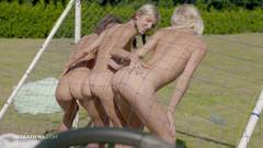 Fodendo três gatas bonitas no estádio de futebol