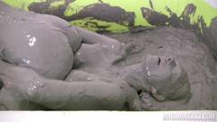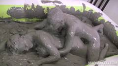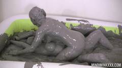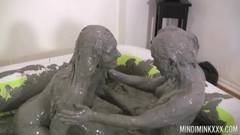 As duas belas mulheres vão tomar um banho de barro, vão esfregar tudo em si mesmas, são sublimes e gostam de fuder em estilos estranhos