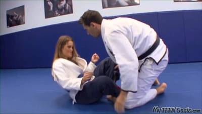 Este professor de karatê vai passar algum tempo de qualidade com sua aluna, devo dizer que essa vagabunda adora pau!