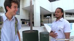 Esse cara está ansioso para que o negro penetre em sua bunda branca e ejacule em seu corpo. Ele estava muito satisfeito.