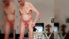 Este velho magro lubrifica todo o seu corpo com bronzeador, fica cuidadosa e meticulosamente em frente à câmera e sabe muito bem que está excitando.