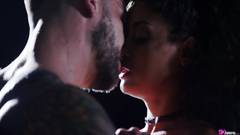 Aqui está uma cena de sexo quente em que Rebel dança no escuro de forma tentadora para seu amigo tatuado e depois se dedica ao pau dele!