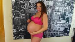 Essa morena grávida está mostrando seu traseiro enquanto ela o acaricia e nos provoca em sua lingerie.