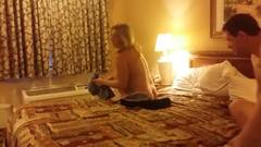 Uma garota loira sexy grávida está excitada como o inferno e deixa um cara filmar ela fazendo sexo com o seu marido.