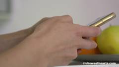 Kate está prestes a enviar algumas fotos de seus seios para uma amiga, está toda animada e aproveita a oportunidade para acariciar suavemente sua buceta.