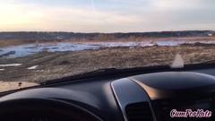 Um jovem casal viaja pela estrada e pára para foder no banco de trás do carro. Tudo o que ele quer é ejacular em sua buceta.