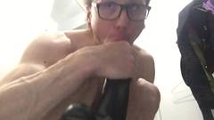 Esse velho está enchendo seu rabo com um dildo enquanto quer se sentir esticado e excitado com seu brinquedo