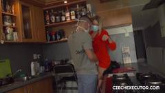 Não só a máscara será removida para que um bom galo possa ser inserido na sua boca, mas suas calcinhas também serão removidas para um galo na buceta
