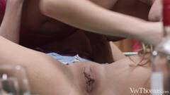 As duas adoráveis mulheres fazem um cunnilingus apaixonado, literalmente devorando as vulvas uma da outra com amor. Como elas parecem deliciosas!