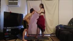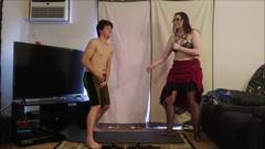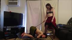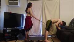 O cara é completamente submisso, ela dá pontapés extremos nas bolas e sempre pede mais, ele é chicoteado por sua dominadora