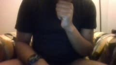 Homem negro gostoso com um pau negro grande brincando com ele na webcam lentamente, à medida que ele fica maior e precisa gozar