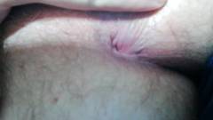 Um jovem gay se filma baixando as calças para enfiar um dedo na bunda e dilatar o ânus com um brinquedo sexual.