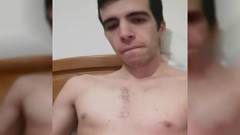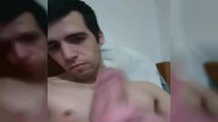 O cara moreno é filmado enquanto se masturba, se dobra e ejacula na sua própria boca. Não perca esse vídeo caseiro!