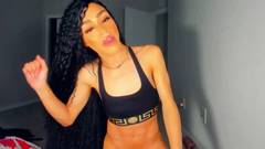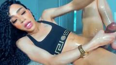 Dinastia é um exuberante tranny negro que gosta de se masturbar o seu grande pênis em frente à webcam.