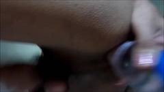 Trans Kam, enfia avidamente uma garrafa em sua bunda e aproveita seu tempo, enquanto se masturba e a faz gozar também.