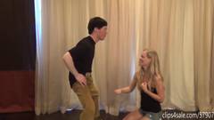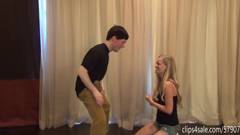 Essa jovem mulher está dando duro para que seu pau fique duro e ver ele rolar por aí a excita muito.