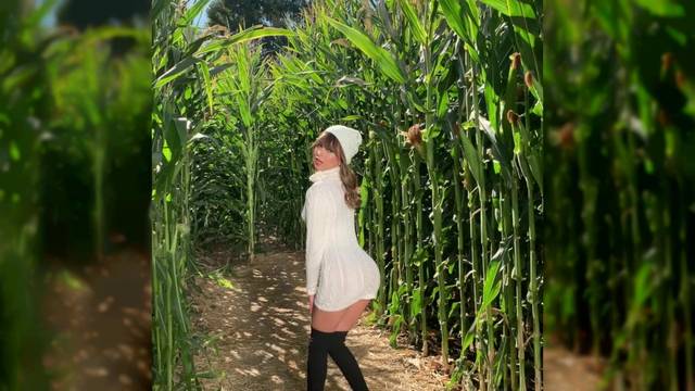 A bela Riley faz uma sessão fotográfica numa plantação e levanta seu vestido para que possamos apreciar sua lingerie sexy e seu rabo perfeito.