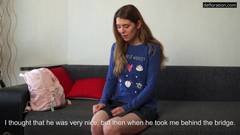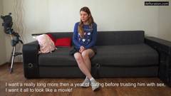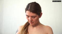 Nina Lizalaks tira a roupa e posa nua, em uma entrevista quente por dinheiro, essa vagabunda mostra sua bunda quente e sexy
