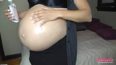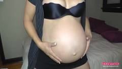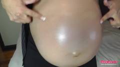 Ela está grávida, mas isso não muda o fato de que ela ainda quer foder apesar de sua enorme barriga. os mamilos duros, ela os belisca e apalpa para nós