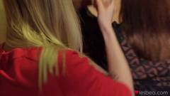Uma morena sexy dança sensualmente no tubo para sua amiga loira cheia de tesão e depois lambe sua buceta até fazê-la explodir de prazer.