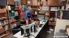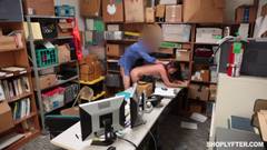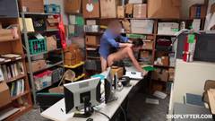 A estrela pornô morena Shane Blair interpreta uma garota que é pega por um guarda de segurança por suspeita de roubo. Ele a fodida com força na sua mesa!