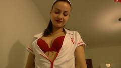 Essa vagabunda amadora está se divertindo com essa roupa de enfermeira enquanto seu homem está com muito tesão e a fode!