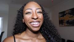 Uma linda garota negra é masturbada com óleo e depois recebe um pau negro duro em seus buracos!