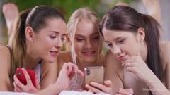 Três lindas mulheres comem suas bichanas