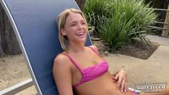 Evelyn gosta de tomar sol e foder, ela vai para aquecer o cara, um pequeno broche antes de abrir bem as pernas para ser fodida