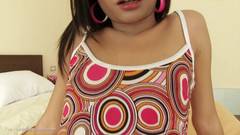 Jovem ladyboy dedilha sua bunda e recebe sexo anal e creampie depois de sexo oral.