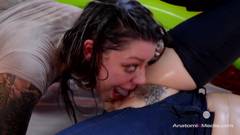 Chanel e Karma com um dildo de cinto na piscina de óleo