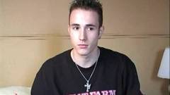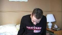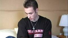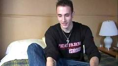 Jo é um jovem excitado com um galo duro que mal pode esperar para se masturbar e se fazer ejacular por cima de si