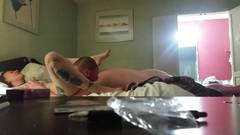 Angie e eu conseguimos um hotel e fodemos a noite toda. Garota hippie com tatuagens e um grande corpo. Eu comi sua buceta tão boa e a foda dela.