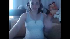Essa jovem grávida está muito excitada e precisa se mostrar na frente da webcam. Ela se despe e acaricia seu corpo, incluindo a sua buceta.