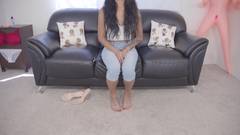 Camila é uma colombiana de pele morena muito linda e sexy. Nesse casting faz garganta profunda com um boneco pauzudo e cavalga em todas as direções.