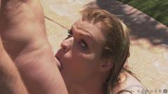Damien Thorne tem seu pau chupado por uma bela travesti e decide transar com ela à beira da piscina!