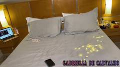 A espantosa shamale Gabriella de Carvalho vestida com uma roupa sexy de Pai Natal e botas pretas, a se masturbar até ficar dura.