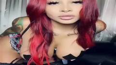 Essa EMO de cabelo vermelhos e corpo tatuado esta de pernas abertas a encaixar um grande dildo pela buceta adentro enquanto fala sujo na webcam.