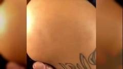 Uma morena sexy com um rabo enorme e grandes mamas recebe uma ejaculação nas suas mamas depois de ter feito um broche incrível.