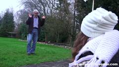 Avô pervertido transa com uma garota na rua